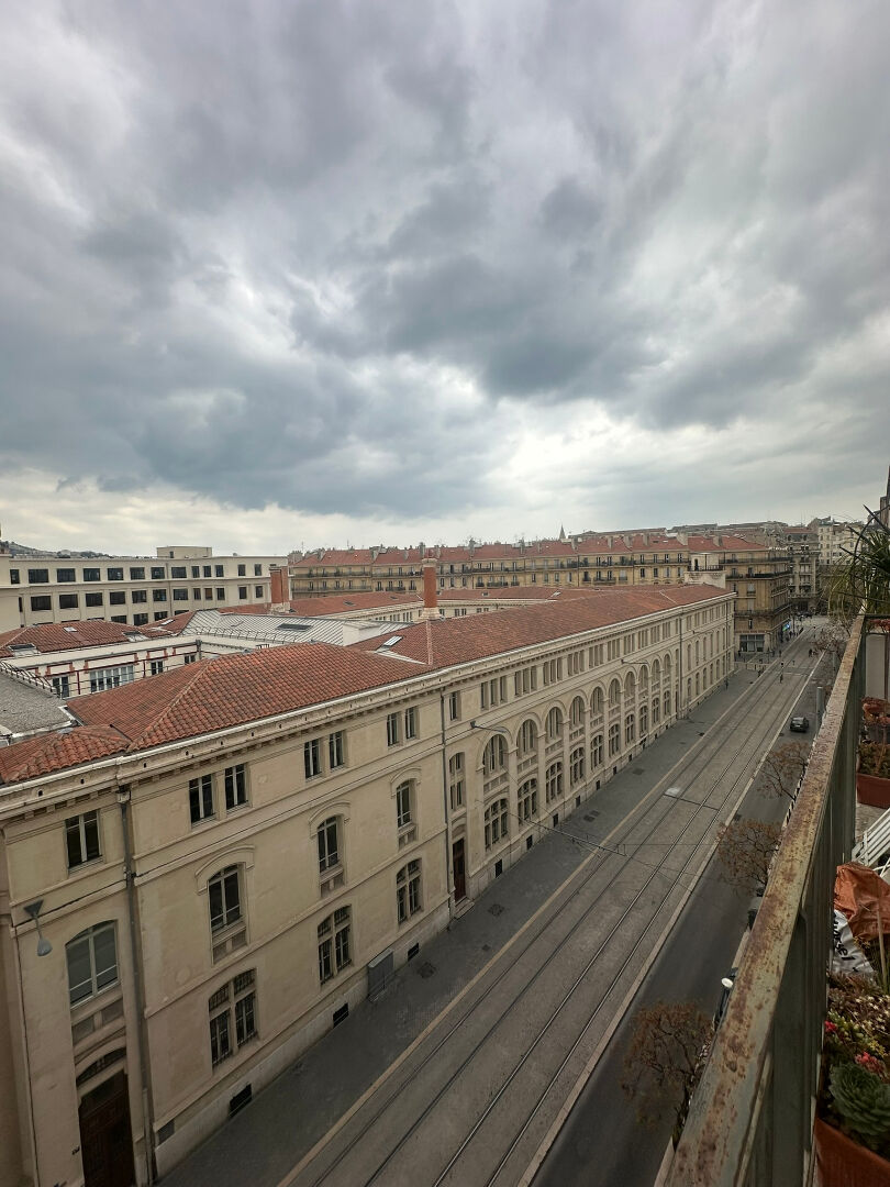 Nous vous proposons à la vente dans un magnifique immeuble bourgeois, au 4ème étage avec ascenseur, un appartement de caractère de 96m² avec balcon filant. L'espace se compose à l'entrée d'un grand couloir central desservant de beaux volumes pour les pièces de vie, cuisine et chambres, à l'extrémité salle de bain et WC. Hauteur sous plafond, moulures, cheminée, tomettes, cet appartement a su conserver tout le charme de l'ancien. Pièce de vie et chambres ont un accès balcon avec une superbe vue sur les toits marseillais et l'ancien hôtel des postes. Une cave est également vendue avec l'appartement.